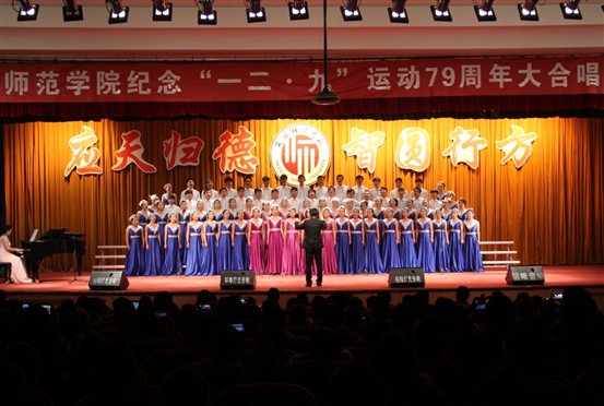 12月8日到9日晚,在文化路校区大礼堂举办的纪念“一二·九”运动79周年大合唱比赛中,米乐代表队凭借精湛的技艺,完美的表现,喜获大赛优秀奖的佳绩。