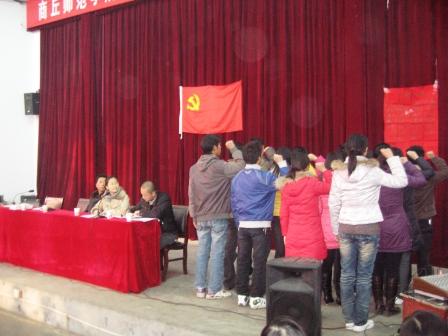雄壮的歌声,庄严的场面,12月17日,环境与规划系党总支在文化路校区文工团举行新一届党员宣誓大会,该系党总支副书记贾永,教工支部书记李琳、组织委员李红忠出席会议,会议由李琳书记主持。