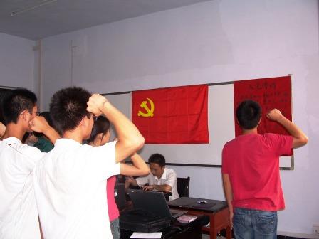 学生党支部李琳书记向与会人员作了致辞并宣读了今天参加宣誓仪式人员的名单。她肯定了这12位同学在平时特别是在米乐评估期间的积极表现,希望他们从今天起,再接再励,更加全心全意的为人民服务。接下来,12位新党员在领誓人的带领下,面向党旗,庄严宣誓。宣誓毕,新老党员及入党积极分子代表分别从自身的角度谈了他们对党的认识。