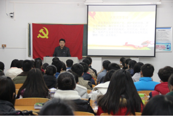 1月6日下午,环境与规划学院新党员入党宣誓仪式在文化路校区一号教学楼103教室举行,环境与规划学院党总支书记王东平,四个学生党支部书记李琳、魏理、刘伟堂、路璐及全体学生党员参加了宣誓仪式。