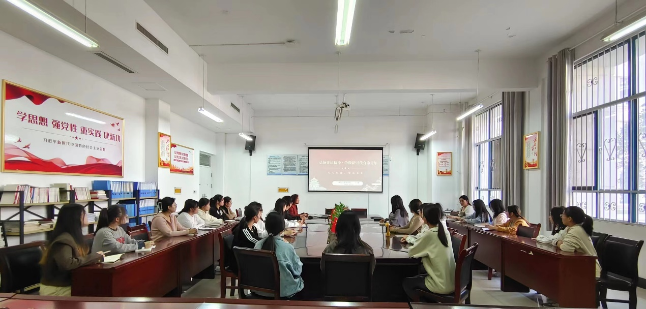 王丽从杭州亚运会介绍、赛事项目、赛事文化和弘扬亚运精神,奋进新时代四个方面进行分享。她寄语青年大学生弘扬亚运精神,争做新时代有为青年。一要坚定理想信念,厚植爱国情怀,不断增强爱国荣誉感、自豪感。二要有敢拼敢闯干事创业的精气神,锚定自己的梦想和目标拼搏奋斗。三要有敢于担当能奉献的崇高理想,为民族复兴、中国式现代化建设贡献青春力量。