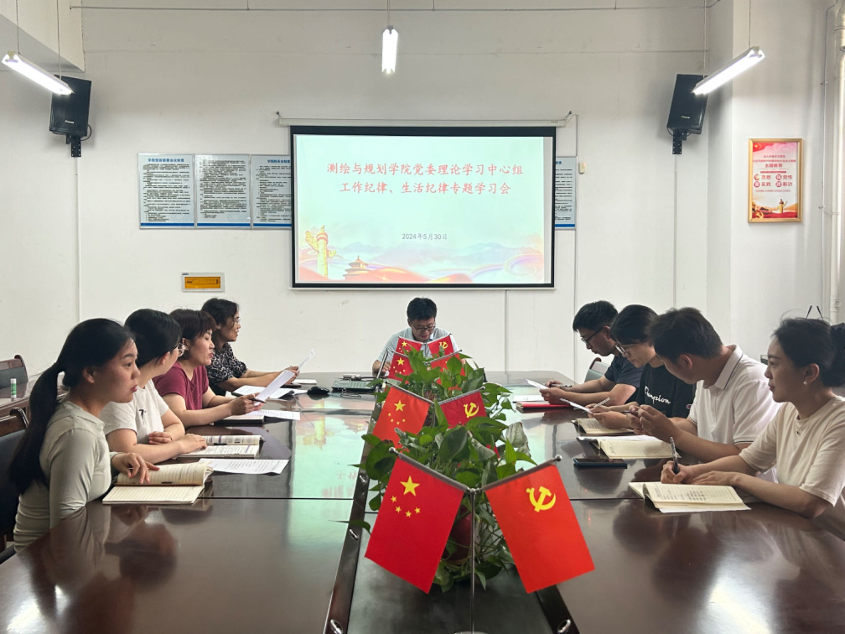 2024年5月30日,MILE米乐集团党委理论学习中心组在三商楼134会议室举行党纪学习教育第三次专题(工作纪律、生活纪律)学习研讨会,党委委员、支部书记参加会议。会议由院长贺振主持。