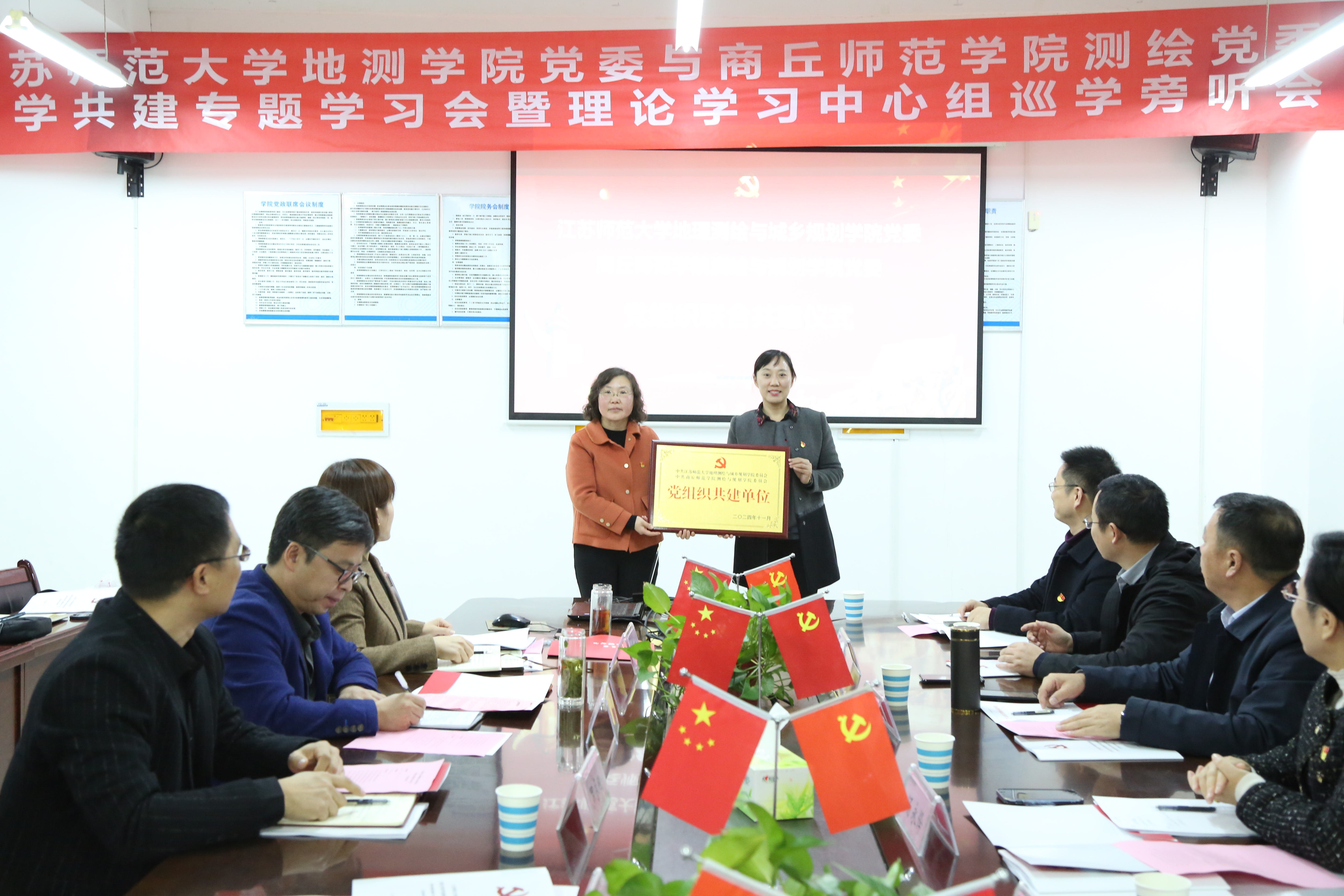 活动分两个阶段进行,第一阶段首先举行了中共江苏师范大学地理测绘与城乡规划学院党委和中共商丘师范学院MILE米乐集团党委党组织联学共建仪式,并开展了第一次联学共建专题学习会暨理论学习中心组集体学习研讨,分享学习体会。第二阶段,双方院长分别介绍了学院的基本情况,包括学院架构、学科设置及师资力量,分享了办学特色和优势以及存在的问题。接着双方围绕申硕建设、协同提质计划、人才培养等方面工作进行深入研讨交流。