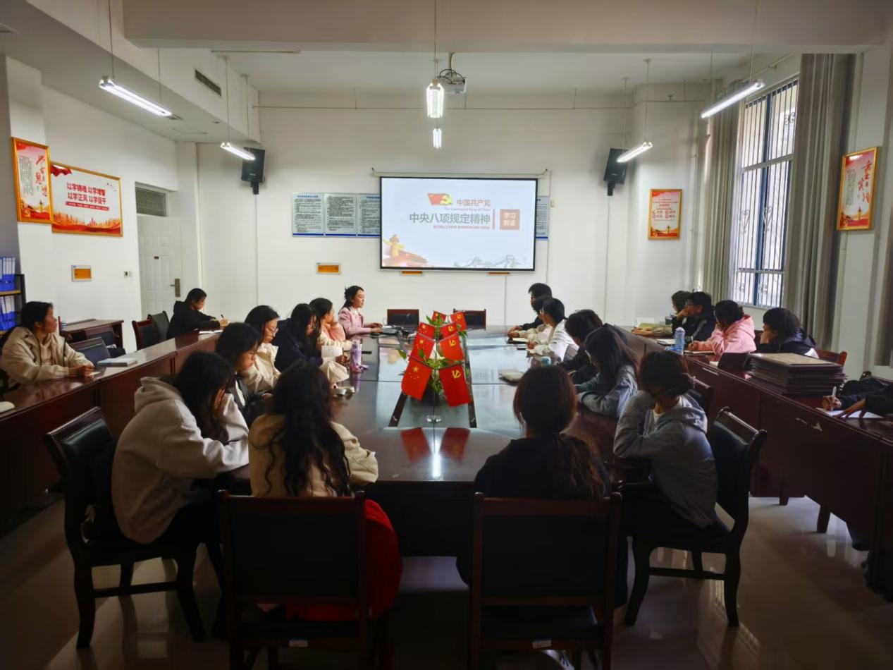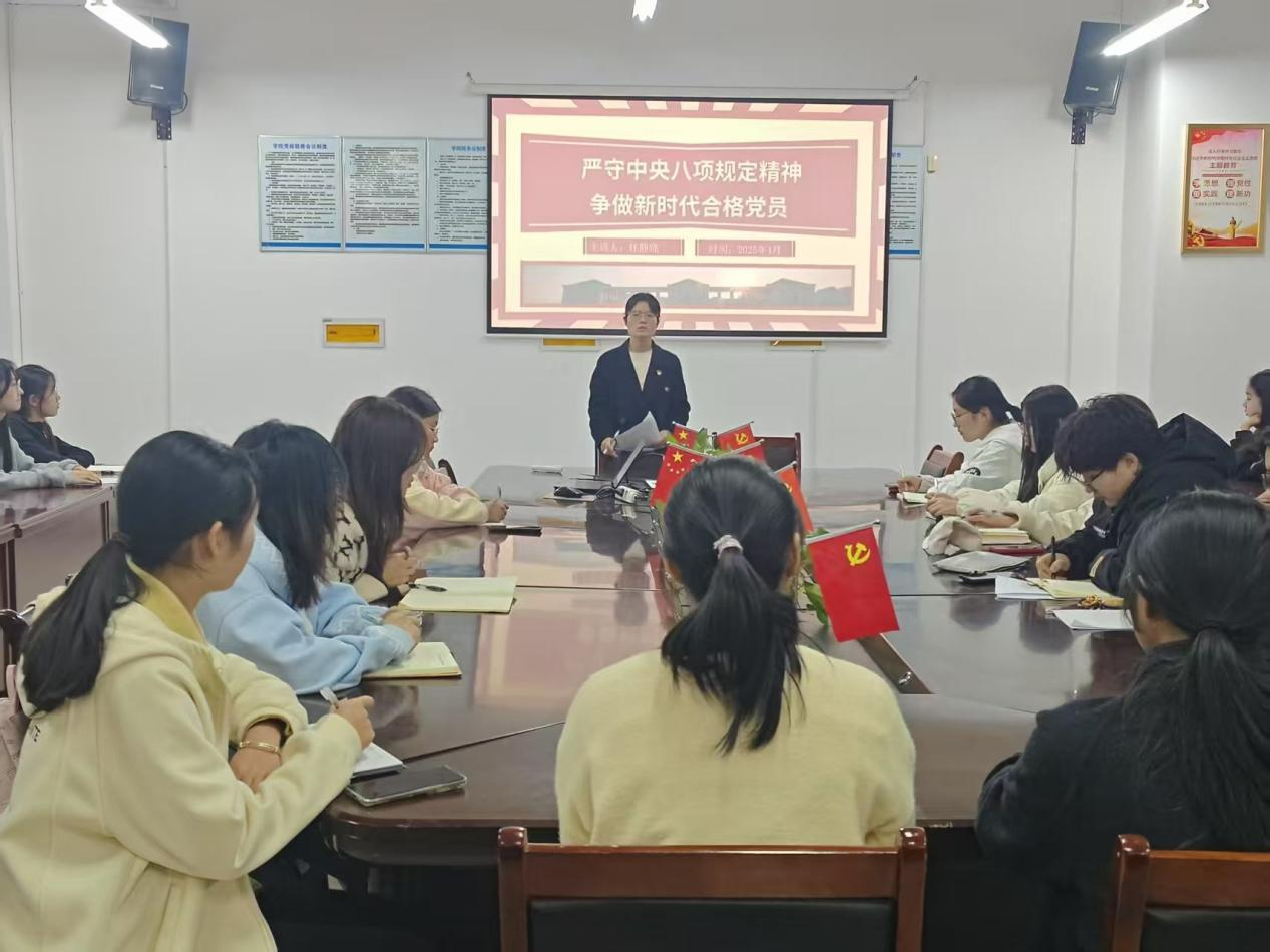 4月2日,学生第三党支部书记任静晓以《严守中央八项规定精神,争做新时代合格党员》为题讲授了党课。