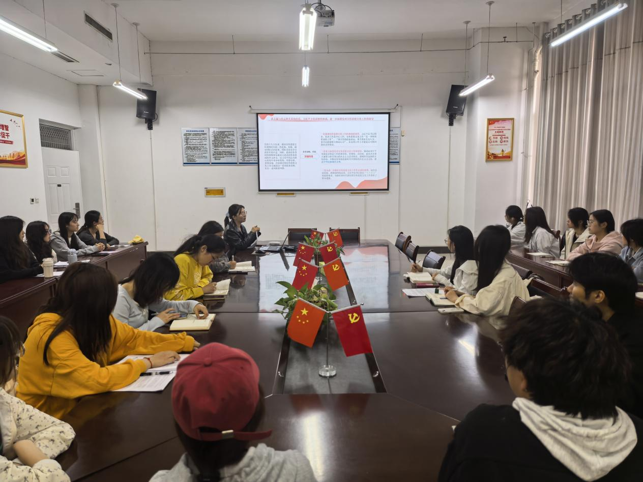 4月9日,学生第一党支部书记苏婉月以《从五个维度深入理解习近平文化思想》为题讲授了党课。