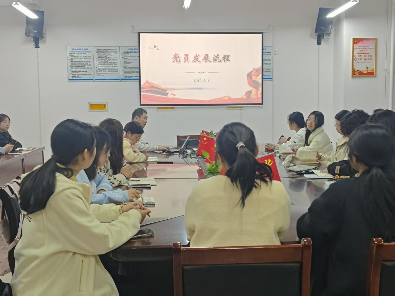 4月2日,学生第二党支部书记张瑞杰以《党员发展流程》为题讲授了党课。