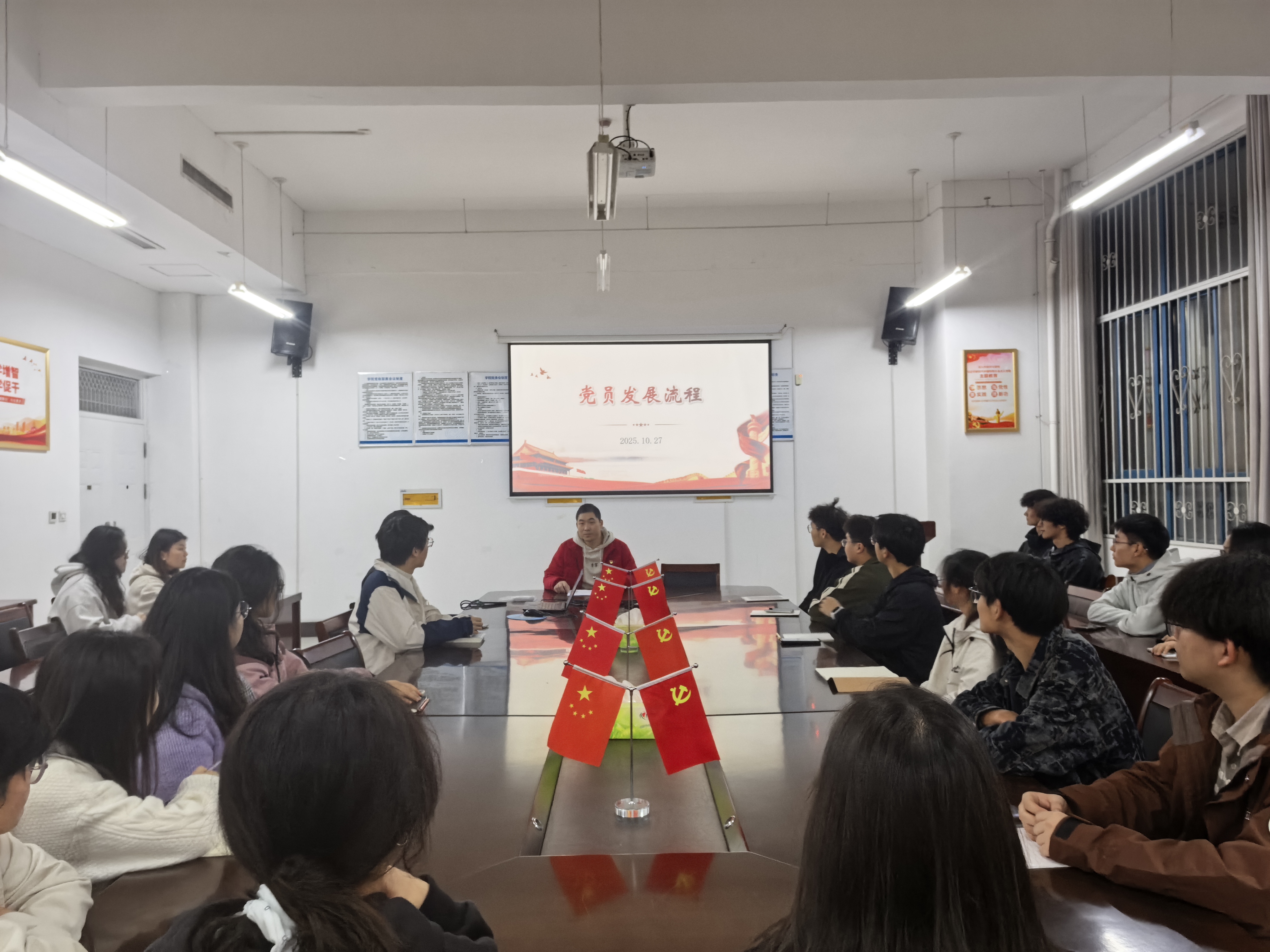 10月27日,学生第二党支部书记张瑞杰以《党员发展流程》为题讲授了党课。