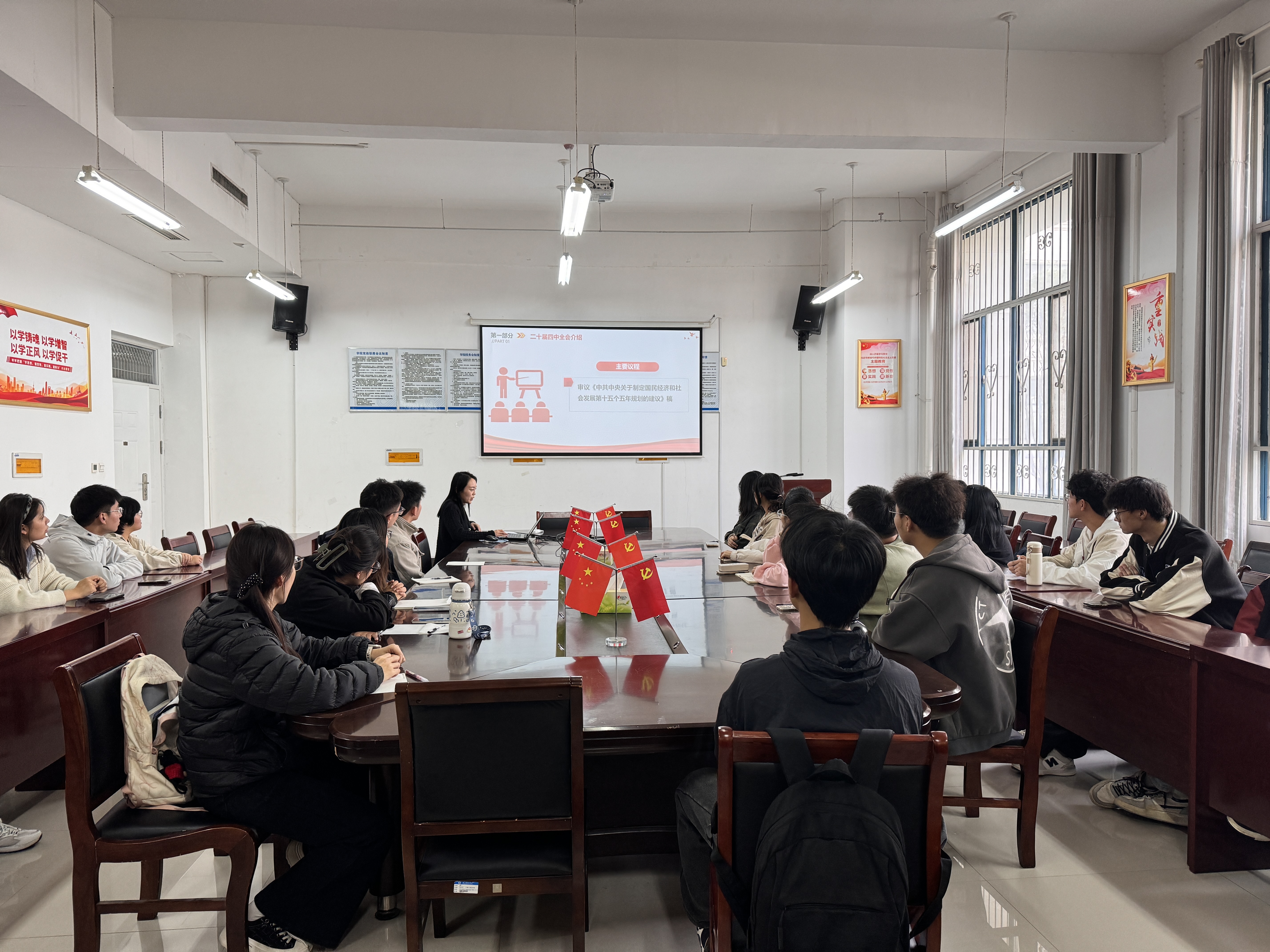 10月28日,学生第一党支部书记苏婉月以《从二十届四中全会公报中读出“五个心”》为题讲授了党课。
