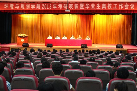 5月30日下午,环境与规划学院在文化路校区大礼堂隆重召开2013年考研表彰暨毕业生离校工作会议。学院全体领导班子成员及全院师生共同参加了大会。会议由院党总支副书记郑颖贞主持。