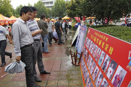 史本林院长在米乐2012届考研光荣榜前为学生家长介绍米乐情况