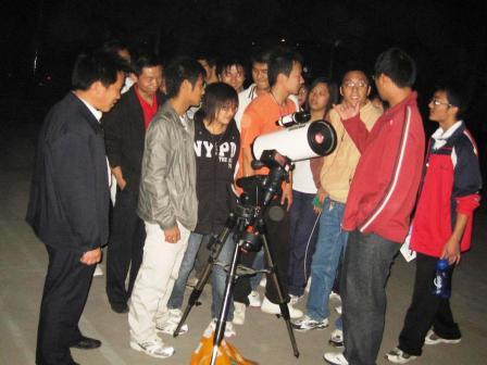 为满足广大天文爱好者的观月愿望,10月14日(农历9月16)晚,环境与规划系晨曦地理协会在文化路校区图书馆前举行了迎新观月活动。该系党总支书记张喜庆、副书记贾永应邀与同学们一起赏月。