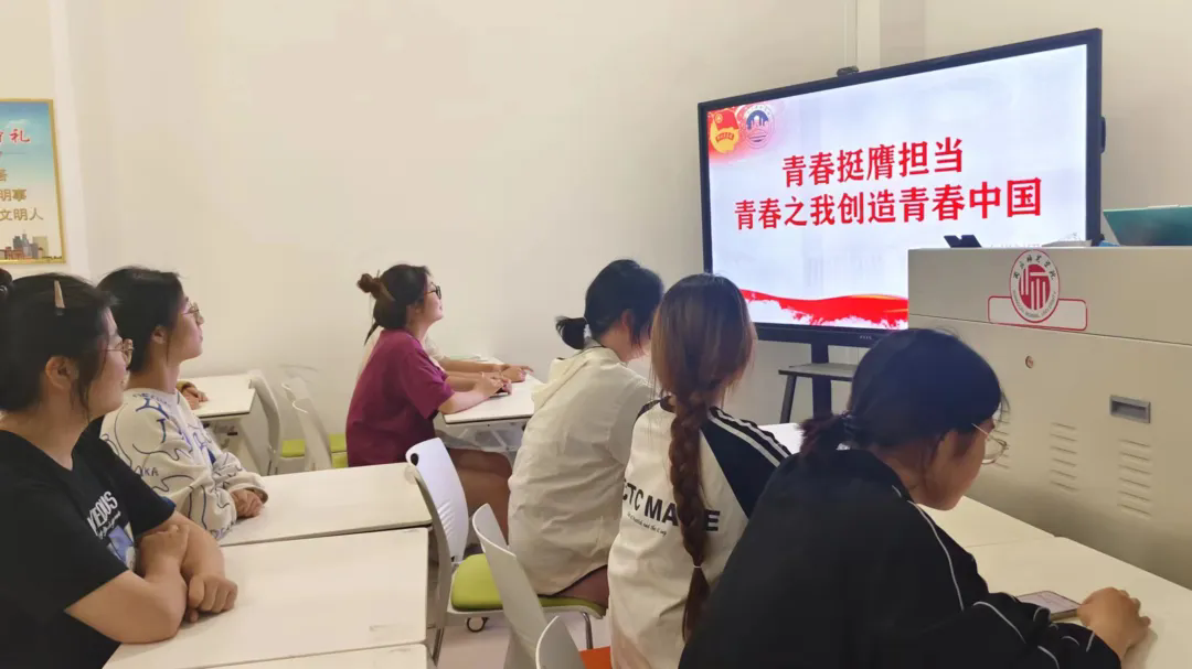 活动伊始,各团支部带领同学齐唱共青团歌。活动中,各支部负责人通过ppt领学了习近平总书记对青年和共青团工作的重要指示批示精神,与青年学生共同探讨青年担当的重要意义,以“青言青语”引领全体青年学生深化认识,在共情共鸣共振中凝聚青春力量。接着,支部负责人通过播放新时代杰出青年事迹的视频来激发学生的爱国热情和担当精神。会后,同学们积极交流讨论,纷纷表示将牢记使命勇担责任,为建设美好中国贡献青春力量。