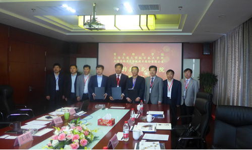 为加快学校转型发展,推进行业学院建设,5月17日上午,商丘师范学院、上海交通大学航空航天学院、上海司南卫星导航技术有限公司三方合作共建北斗学院签约仪式在上海司南卫星导航技术有限公司产业园2号楼4楼会议室举行。我校校长司林胜,副校长陈向炜、徐茂田,上海交通大学航空航天学院党委书记程骄杰、副书记张昆鹏,上海司南卫星导航技术有限公司总经理王昌、副总经理翟传润出席签约仪式。我校校长办公室、实验室建设与实验设备管理处、环境与规划学院负责人参加了签约仪式。签约仪式由上海司南卫星导航技术有限公司副总经理翟传润主持。