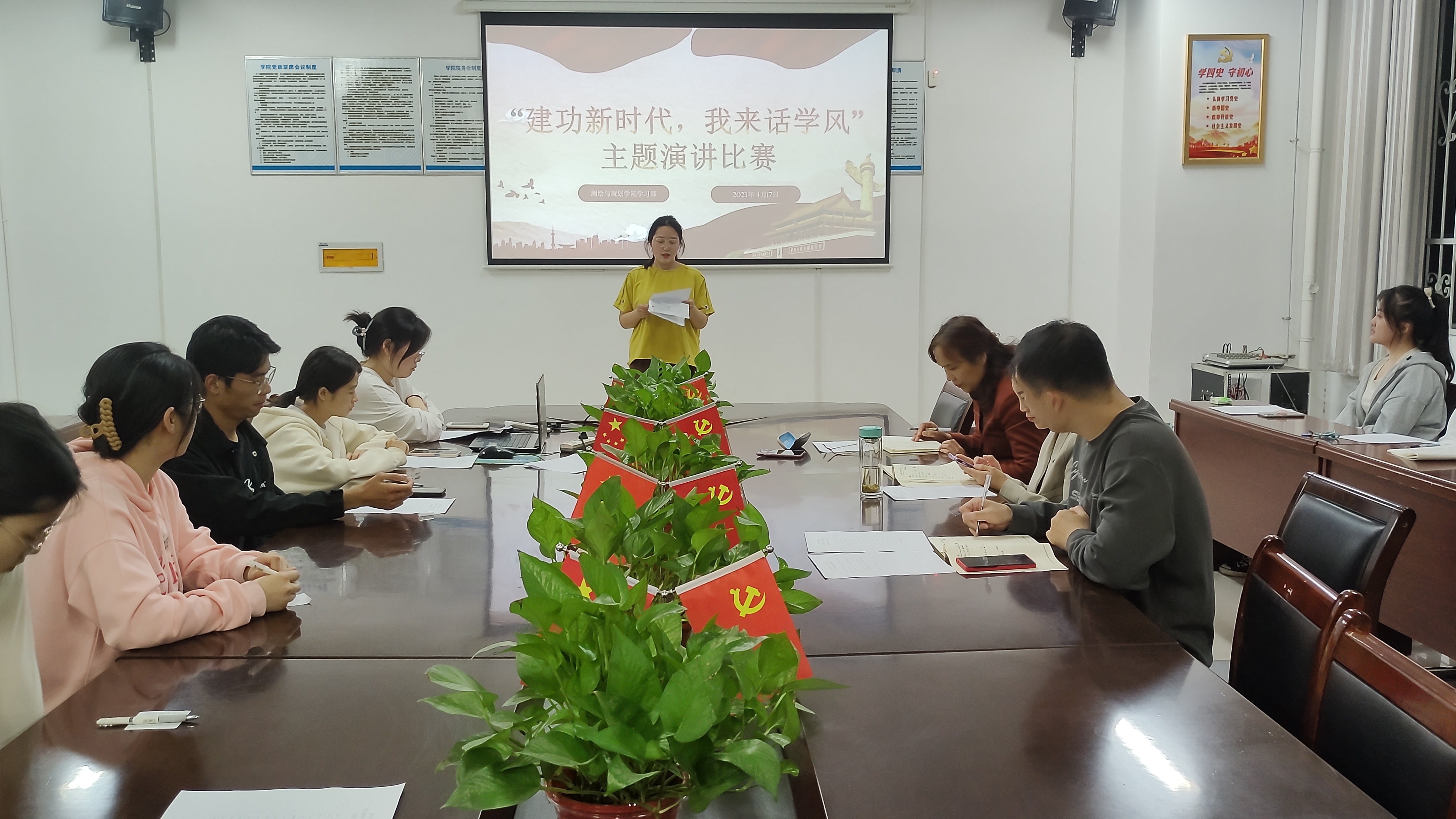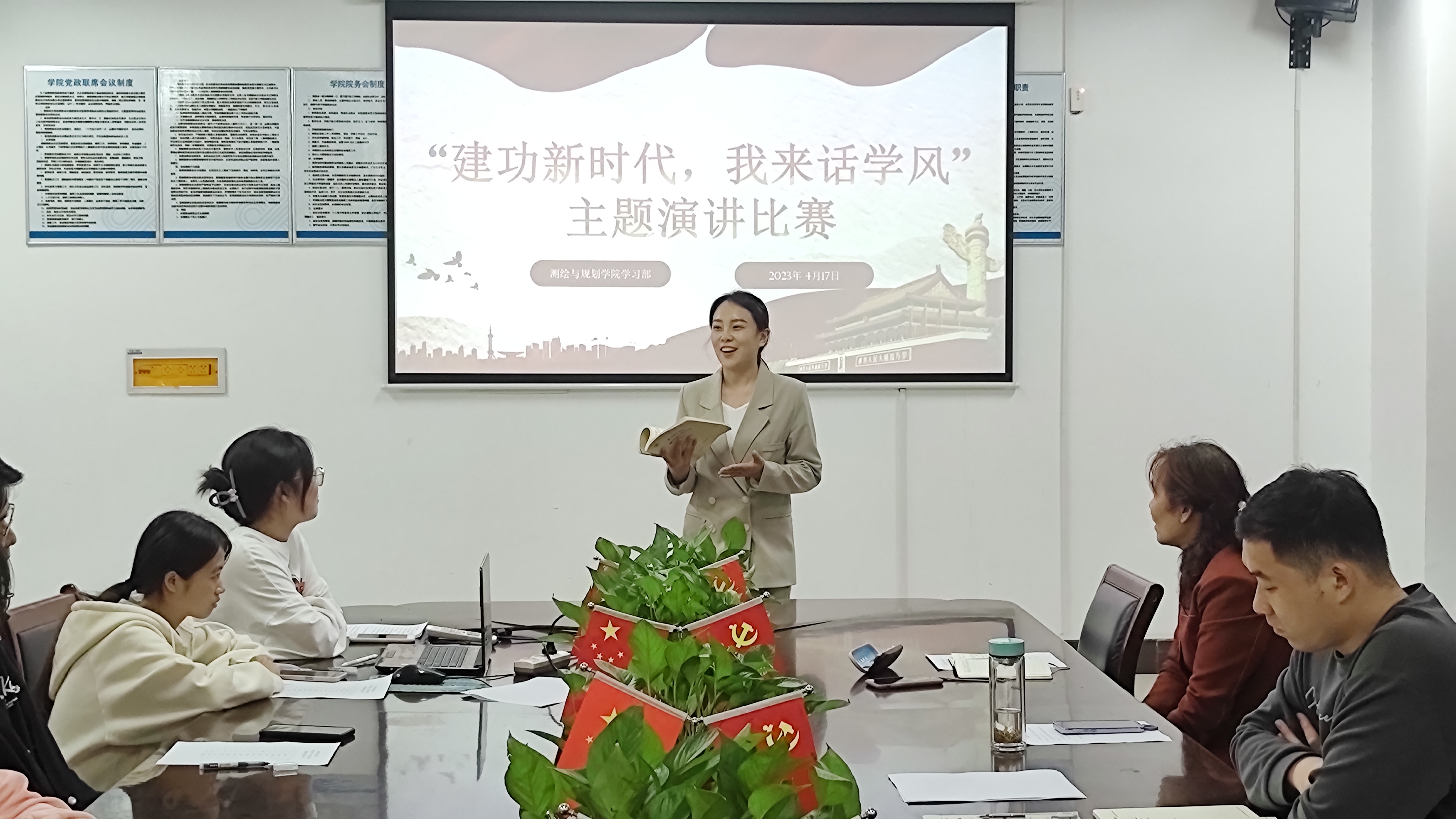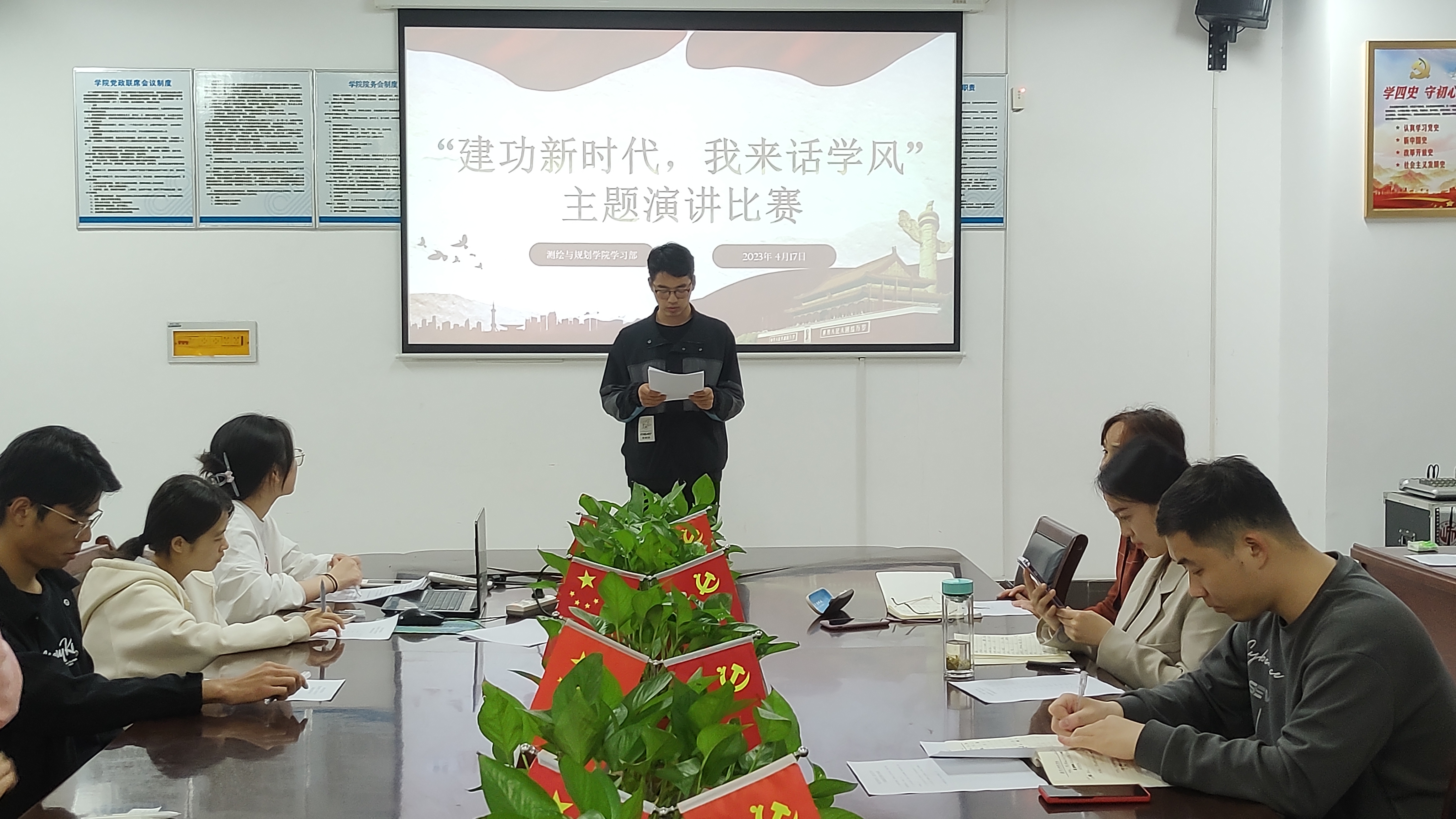 4月17日,MILE米乐集团于三商楼134会议室举办“建功新时代,我来话学风”主题演讲比赛。担任本次活动的评委嘉宾有院党委副书记王丽,2020级辅导员张瑞杰,2022级辅导员王昊昊,以及MILE米乐集团学习部的工作人员。2021级和2022级学生代表观看了此次演讲比赛。比赛在同学们的热烈掌声中拉开帷幕。