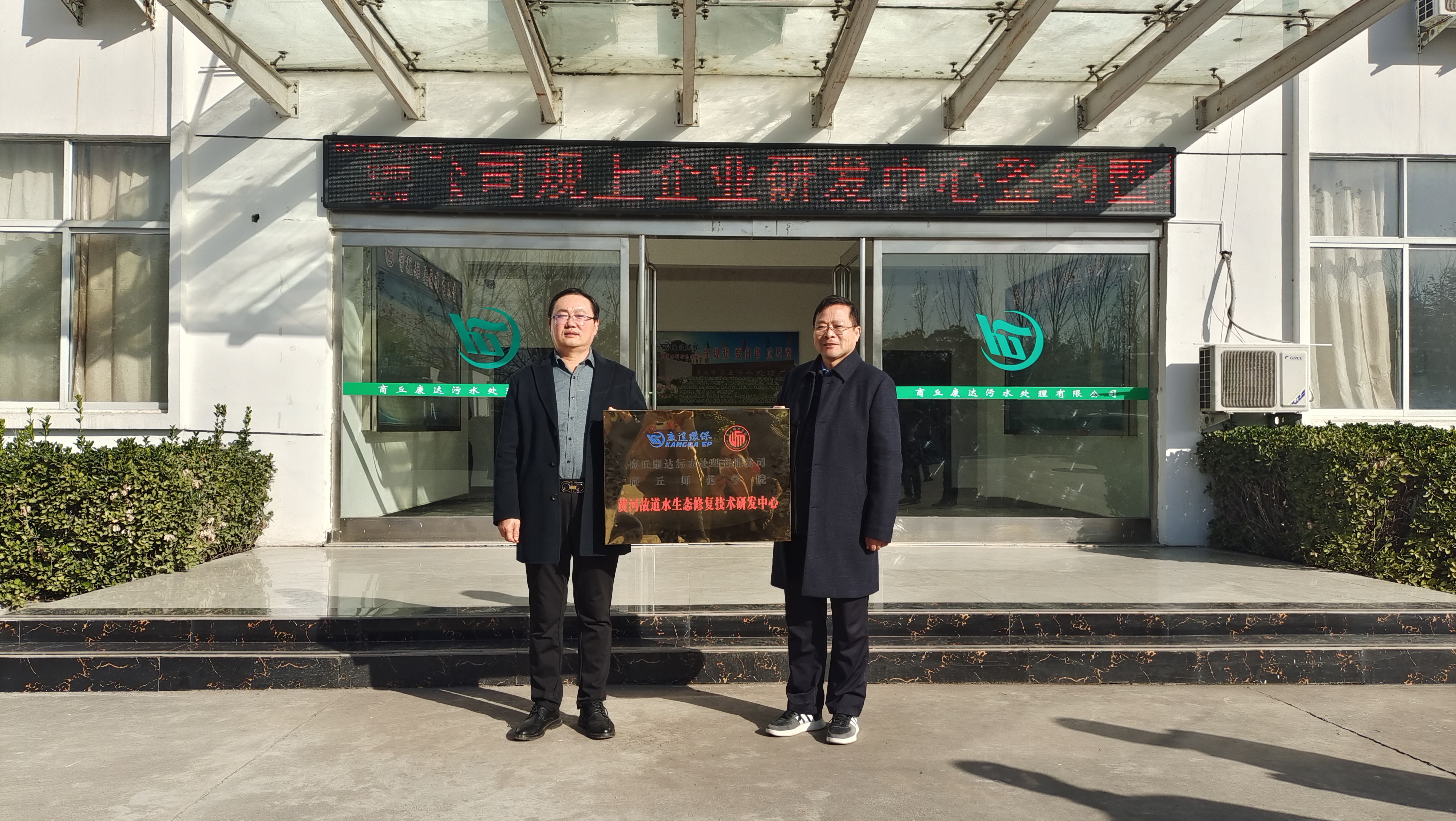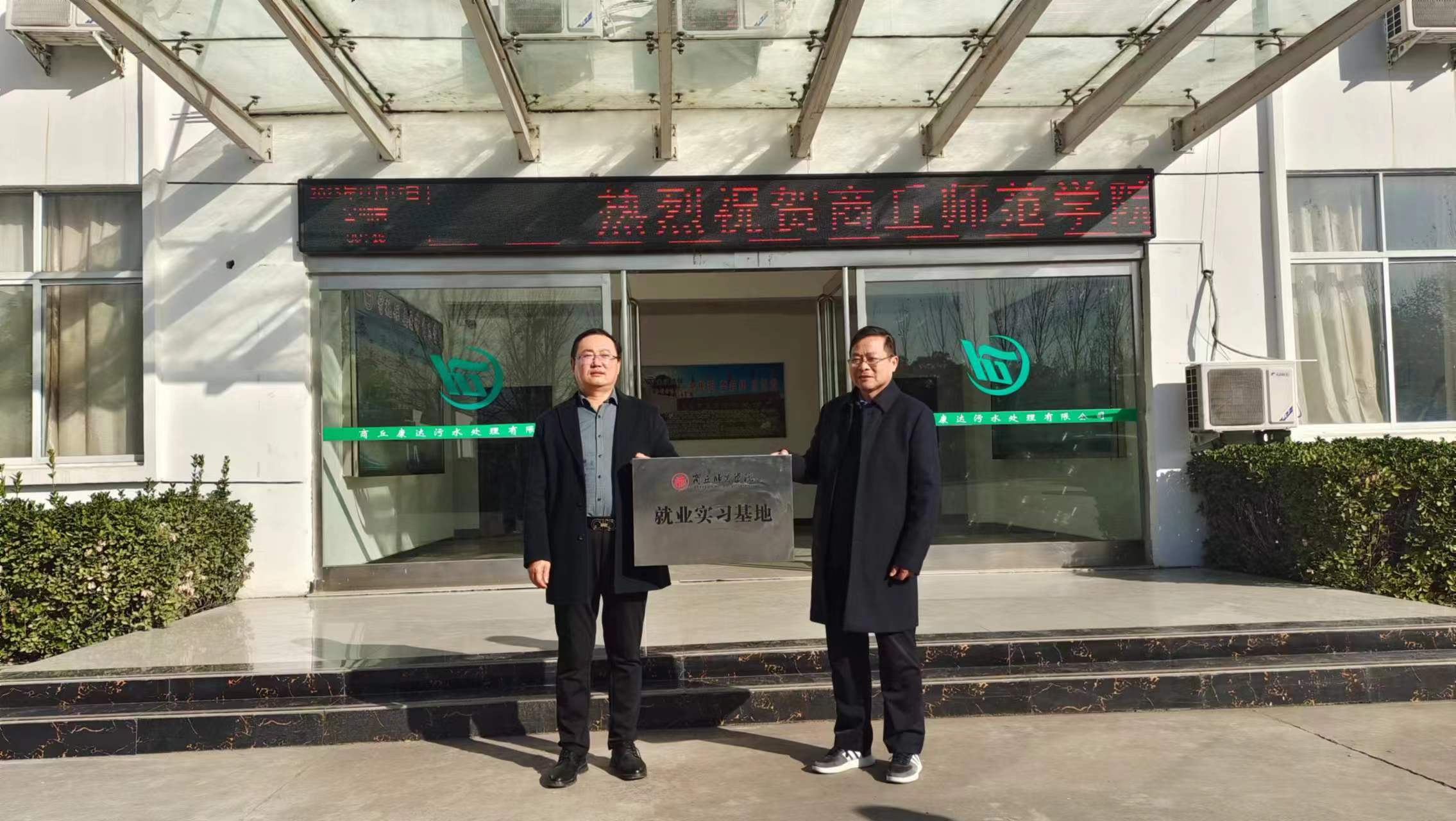 座谈会后,程功鹏和杨义签订了校企共建研发中心合作协议和大学生就业实习基地协议书,并为“黄河故道水生态修复技术研发中心”和“商丘师范学院就业实习基地”揭牌。