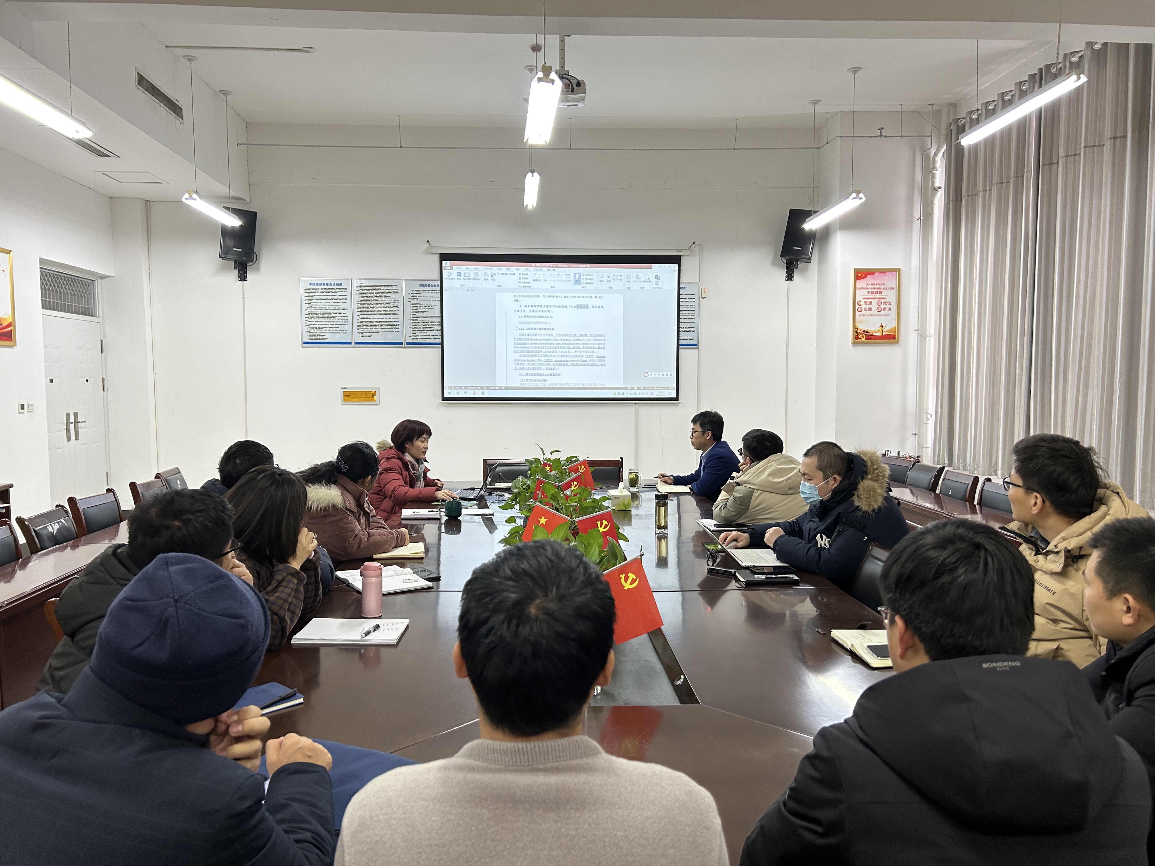 论证会上,申报教师依次从项目选题、背景与意义、关键性科学问题、研究内容、技术路线、研究方案等方面进行了详细汇报。在场同行教师结合申报教师的汇报,就申请书内容进行了论证,并对申请书中存在的问题提出了有针对性的修改建议与意见。通过此次论证会,参会的教师收获颇丰,也增强了信心,为学院2024年国家自然科学基金申报起到了重要推动作用。