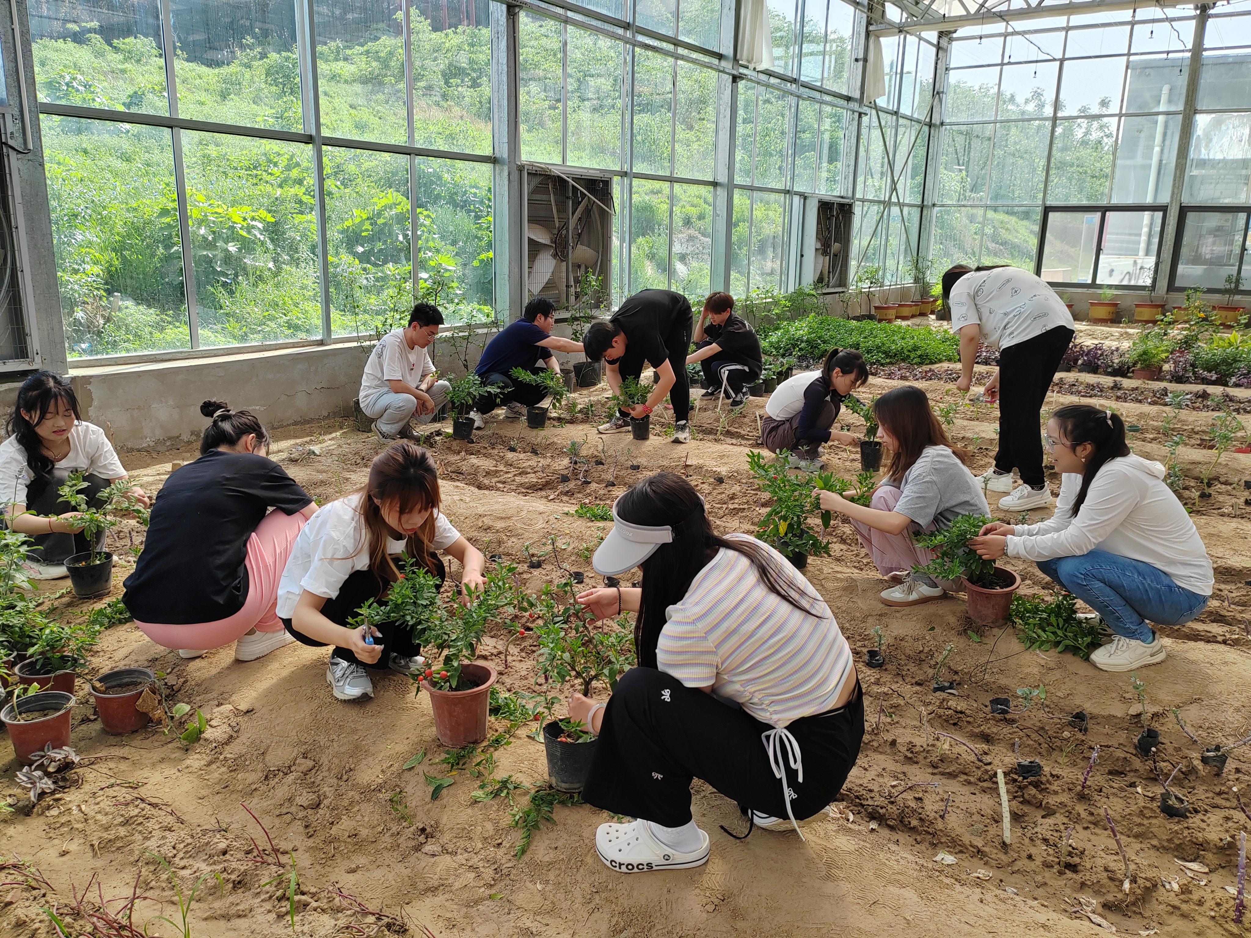 王丽代表学院与宁陵县石榴园负责人平玉振共同签署商丘师范学院劳动教育实践基地协议书并向平玉振老师授牌“商丘师范学院大学生劳动教育基地”。随后,平玉振带领大家参观了石榴园并向大家讲解了石榴盆景的种植技术、培育重点、观赏方法与艺术价值等养护技术要点。最后,参与活动的学生们在基地石榴大棚内开展了劳动实践活动。