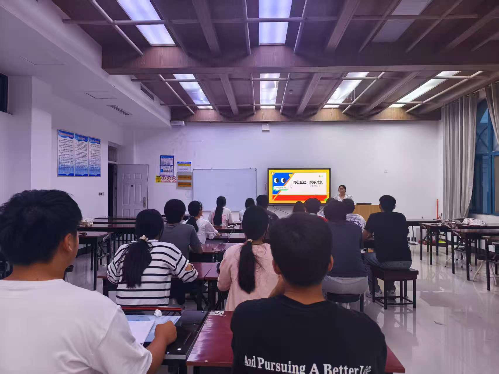 会上,各班心理委员通过展示互助合作的感人故事视频,为同学们日常践行互帮互助提供案例参考。互动环节,分小组讨论热烈,同学们积极分享互助故事,增进彼此了解与友谊。问题抢答环节,同学们热情高涨,巩固互助知识学习成果。团队游戏“同舟共济”和“搭积木”,让大家亲身体验同心互助在团队成功中的关键作用。成果展示环节,各小组代表分享讨论与游戏收获,展示日常互助照片,增强班级凝聚力。