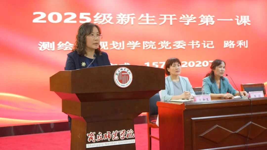 最后,党委书记路利为2025级新生讲授“开学第一课”,既向新生致以热烈欢迎,又饱含对大家的殷切期望与美好祝福。其深邃厚重的谆谆寄语,为新生指引未来方向、启迪思想智慧,正式拉开了新生大学思想领航的序幕。资助专员王昊昊老师和创新创业专员李亚南还分别解读了资助政策和创新创业典型案例。
