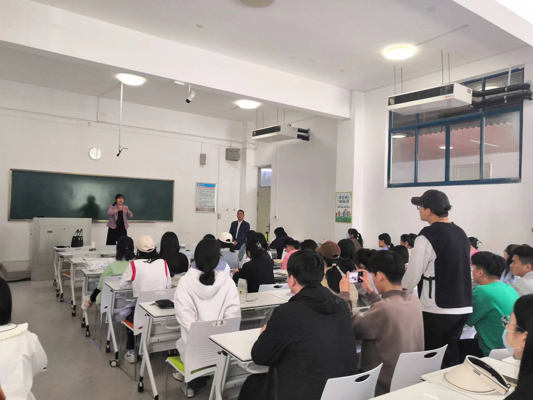 首先由杨笑䶮老师做了关于“地理教学三板技能”的讲座,他在讲授中强调了地理板书与地理板图与板画的概念、作用和设计原则。同学们通过杨老师的讲解,对“三板技能设计”和使用有了更深入的理解。