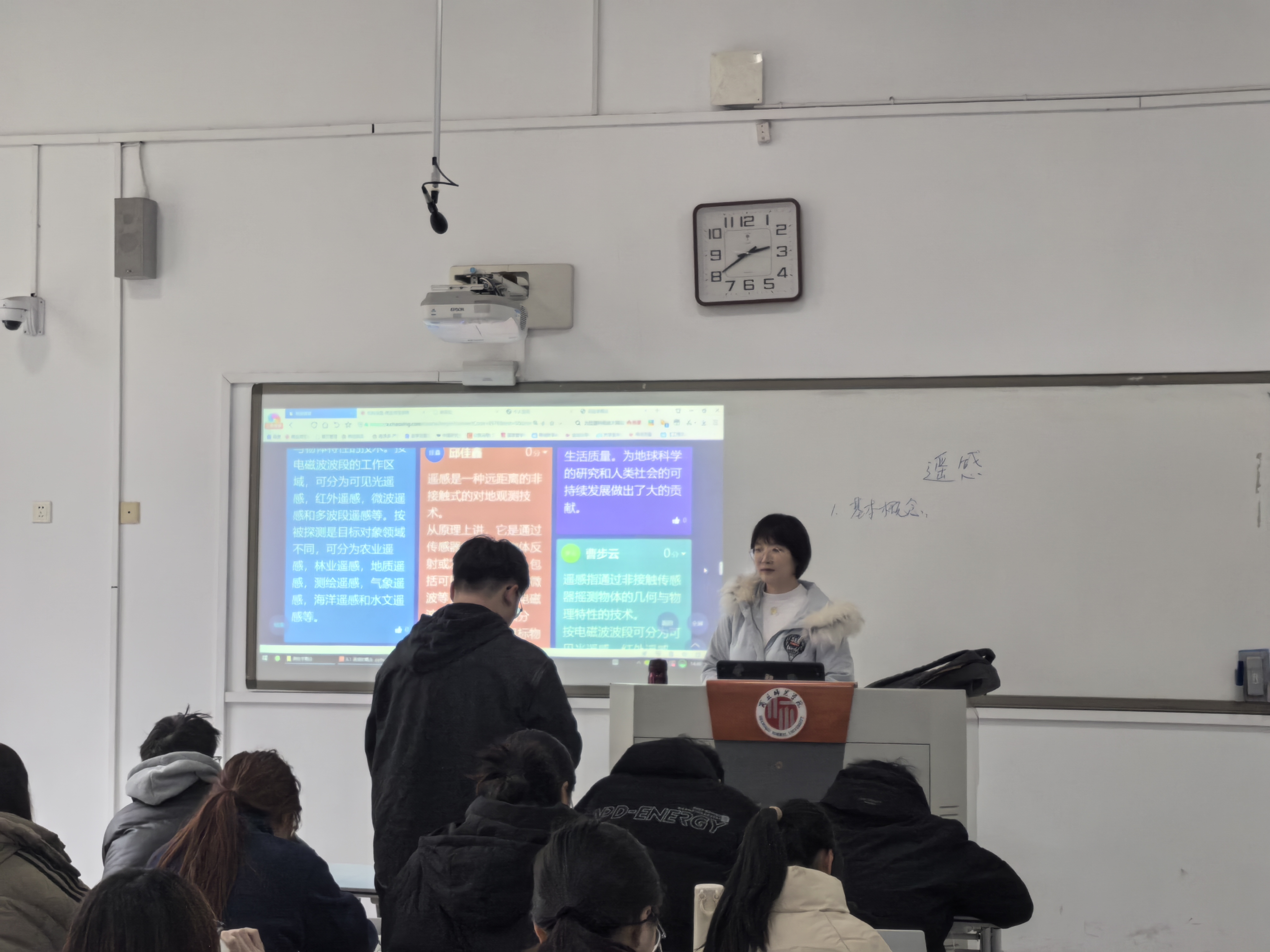 本节课所讲授的是“第八章遥感科学与技术”。主要采用小组协作教学法,有效激发了学生自主学习的热情,促使他们在内在学习动力驱使下,深入探索知识、勇于创新实践。与此同时,课堂充分融合教学信息化手段,设置主题讨论、随机选人等互动环节,极大地调动了学生的积极性,营造出活跃的课堂氛围。在授课过程中巧妙结合我国风云气象卫星在 “一带一路” 进程中的贡献,让学生深切体会到我国气象卫星事业从起步到腾飞的艰辛历程与辉煌成就,有力地增强了学生的民族自豪感与爱国情怀。