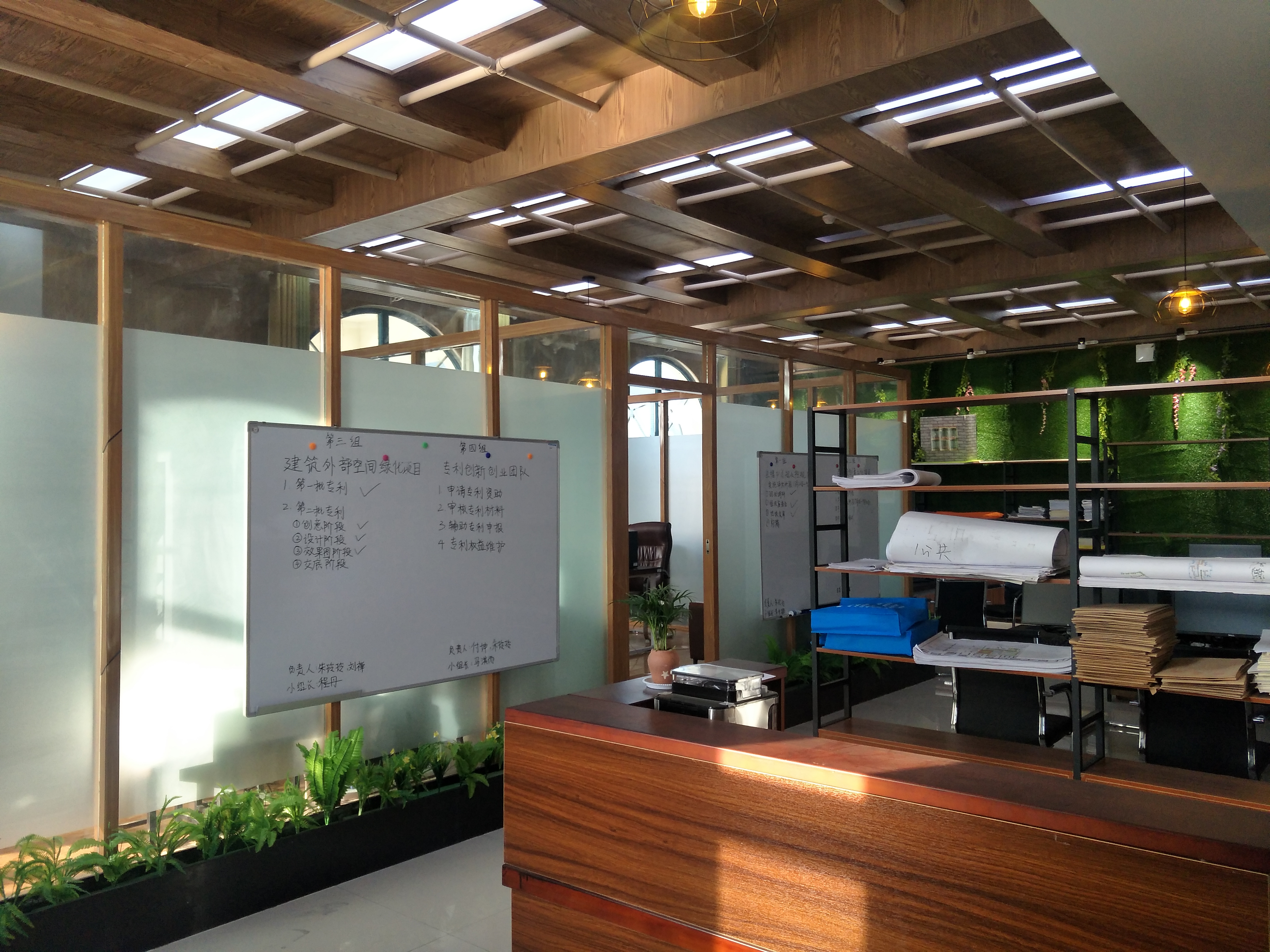 城乡规划设计院共分为三个空间,其中两件办公室为城乡规划教研室和河南省城乡规划设计院驻商丘办事处;外部空间划分为四个组,可分别用于进行校企产学研项目和指导学生创新创业项目。河南省城乡规划设计院驻商丘办事处挂牌后将与城乡规划系合作共同承接规划项目。