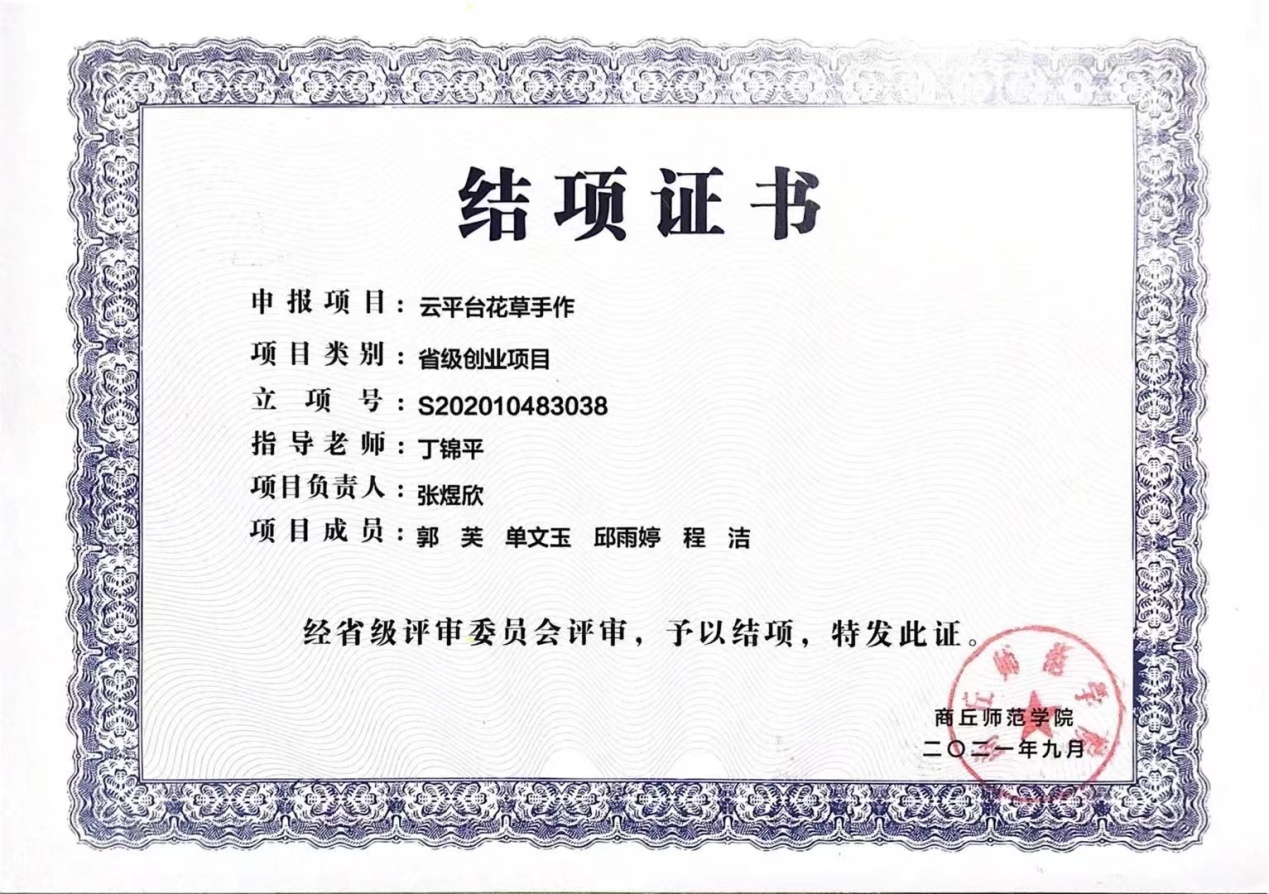 河南省创新创业训练计划优秀成果二等奖 |